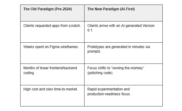 While these AI-generated versions aren't "enterprise-ready" out of the box, they provide a 90% head start. If a development partner is still quoting months for basic wireframing and frontend setup, they are operating in a bygone era. The technology has moved faster than the traditional agency business model.