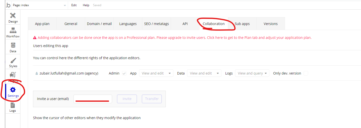 How to Add us as Collaborators in a bubble app