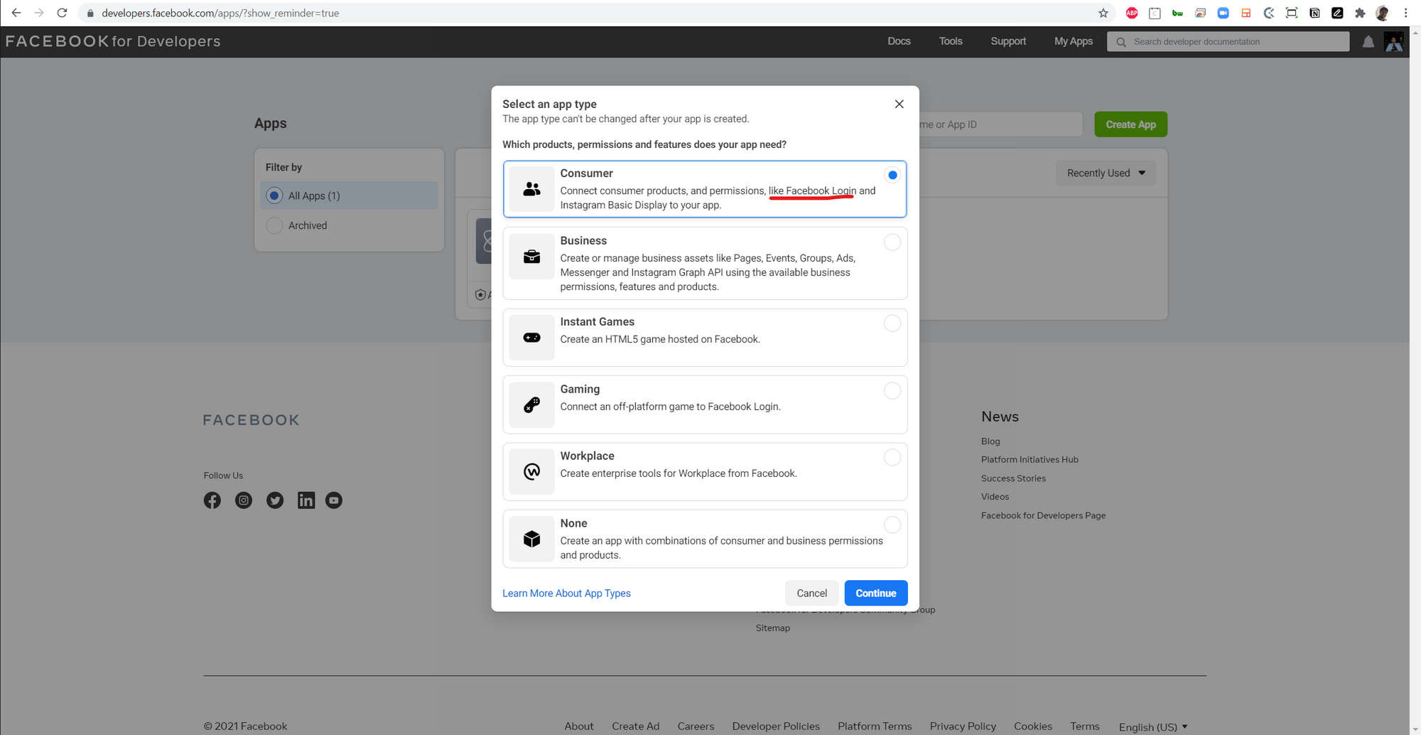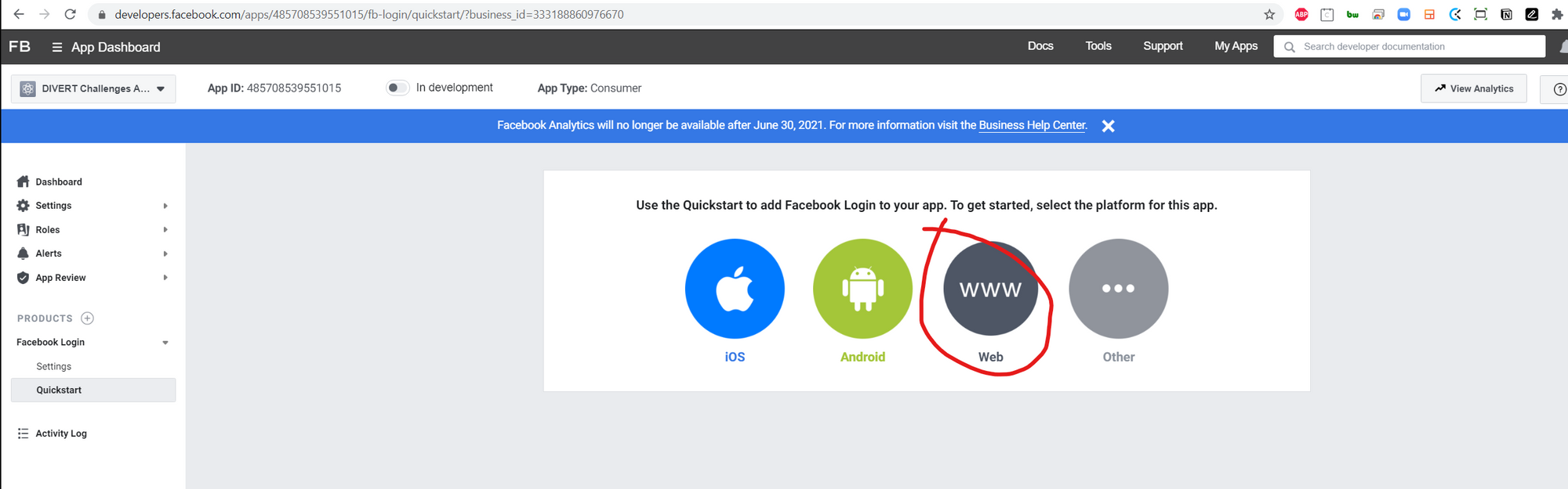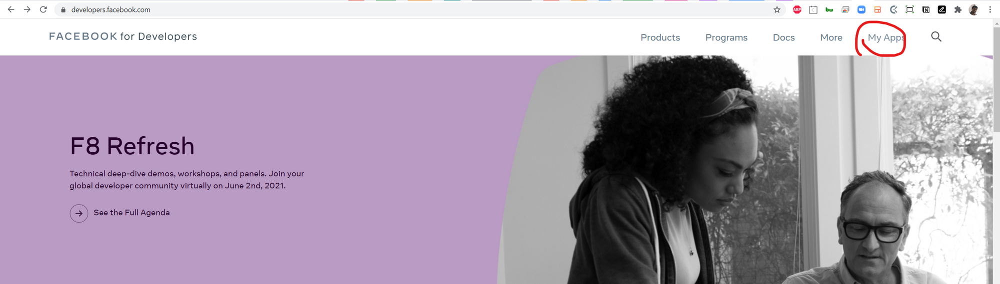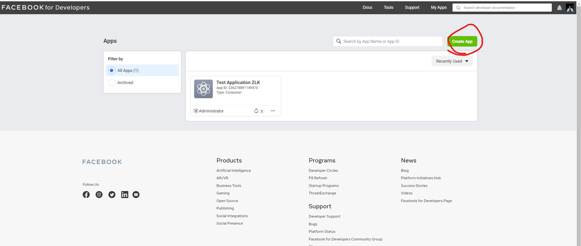Head to https://developers.facebook.com/ and login