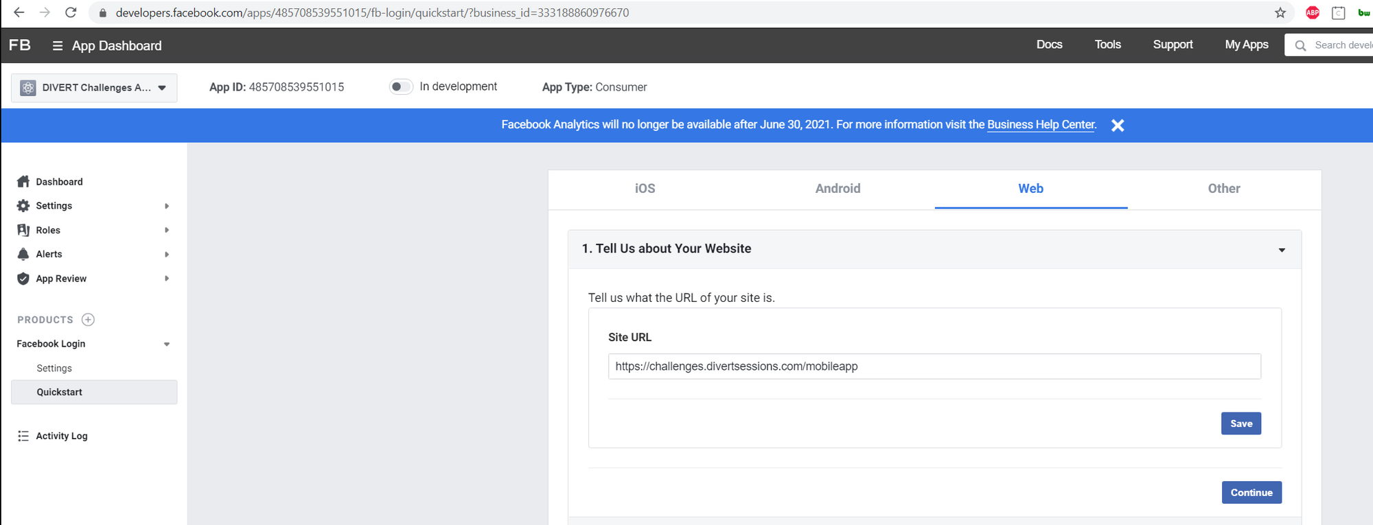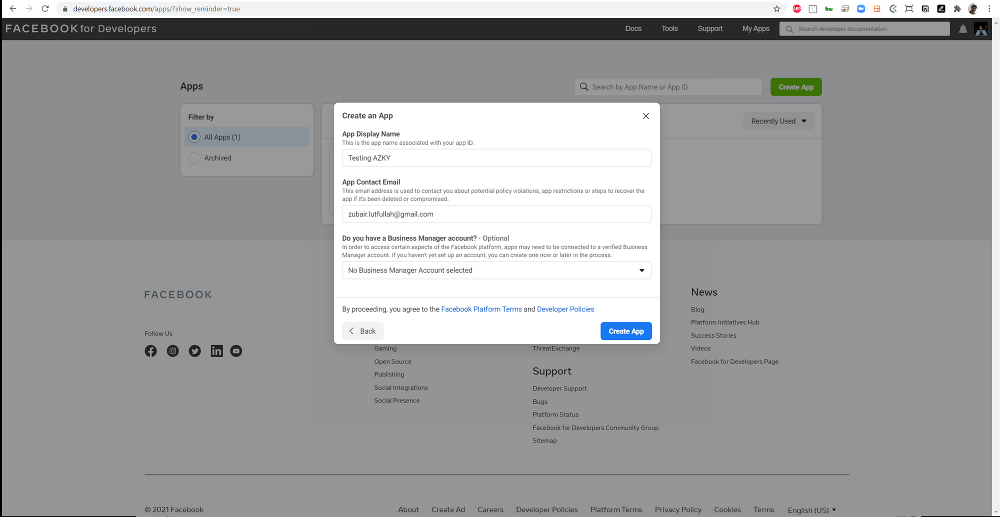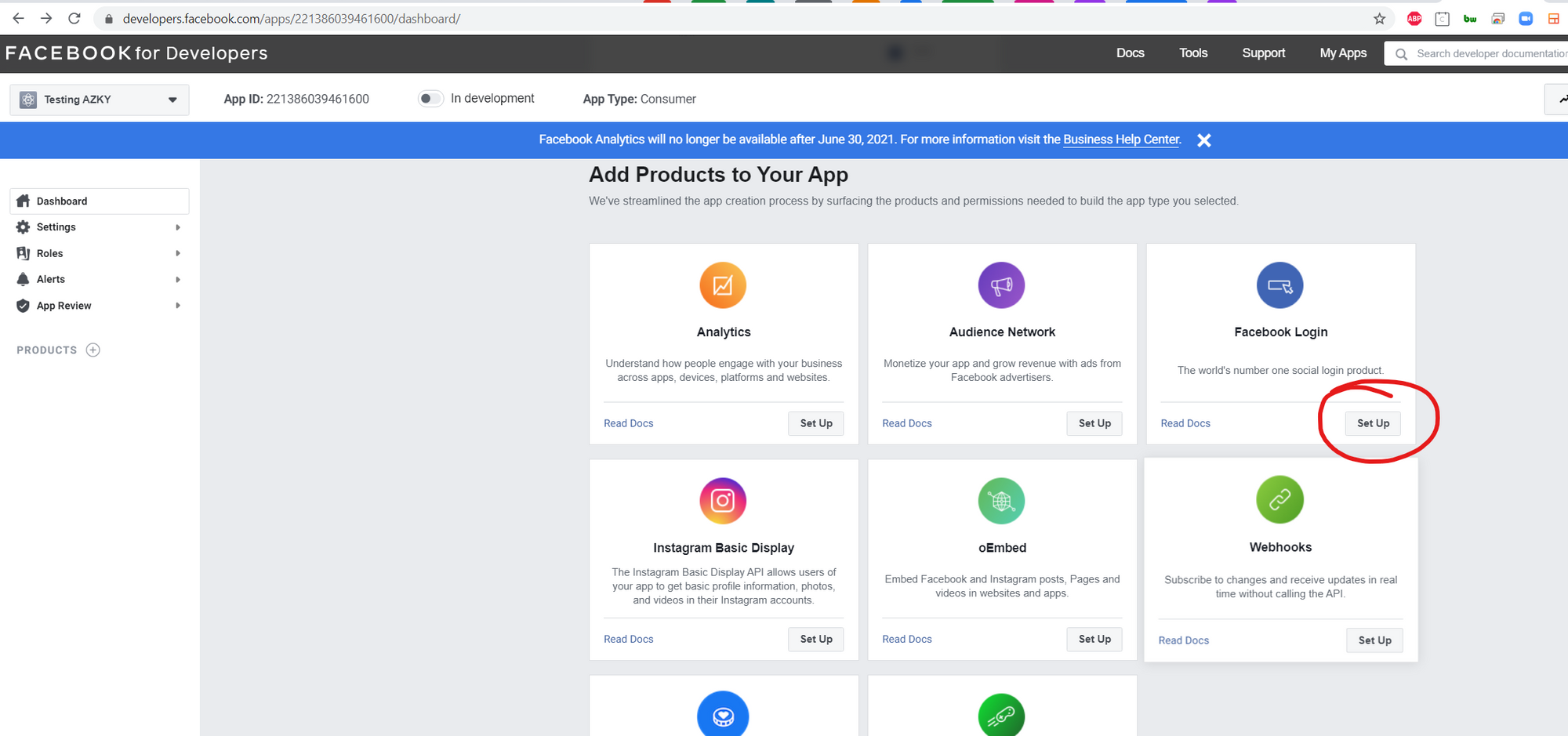 Head to https://developers.facebook.com/ and login