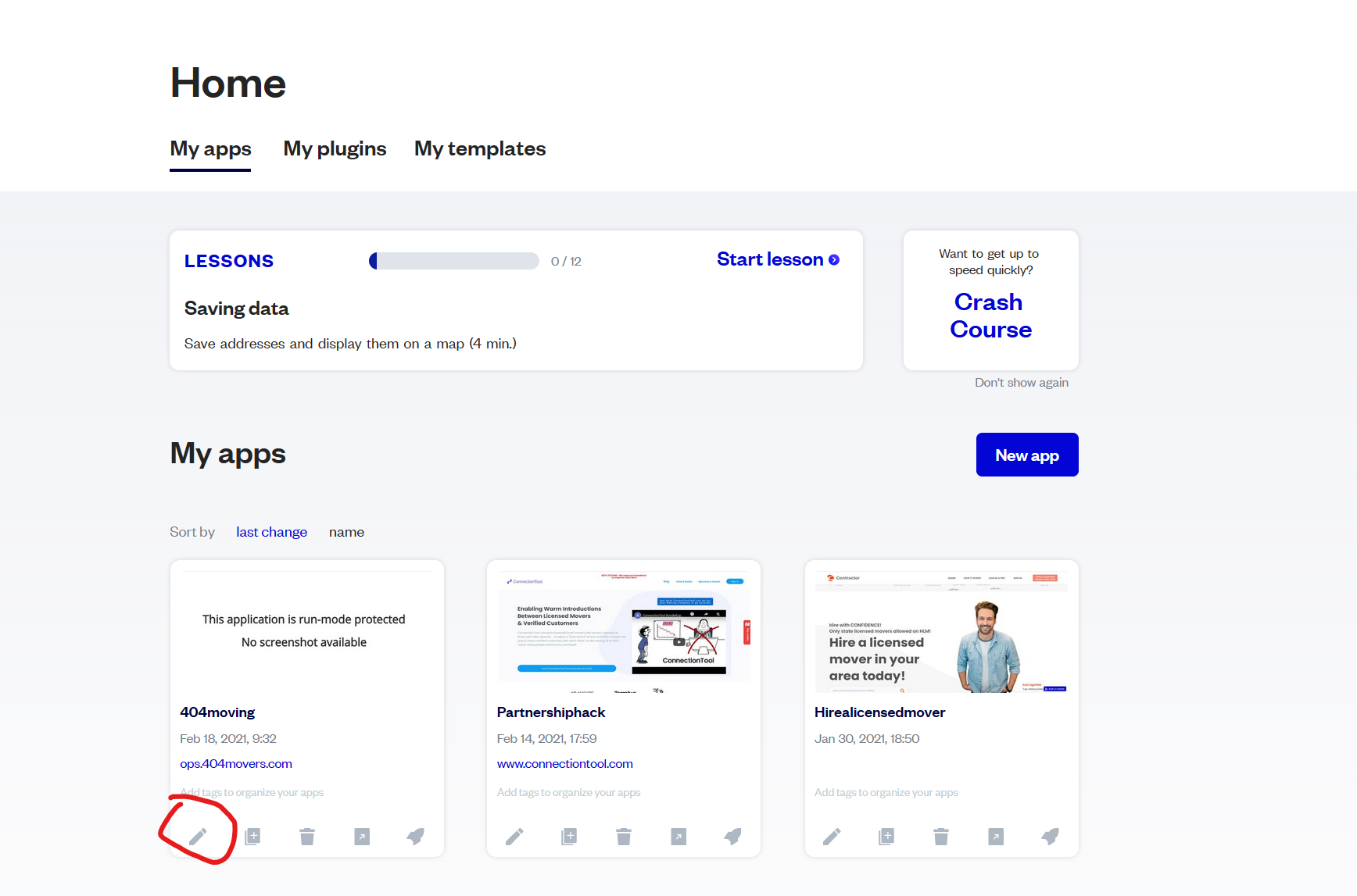 Find out the right app and then click the pencil icon