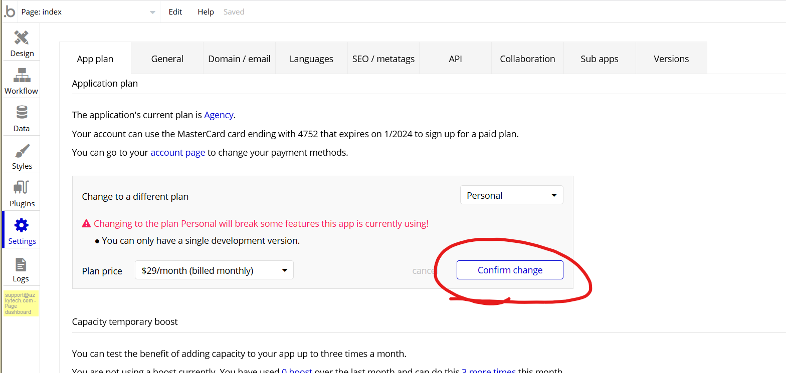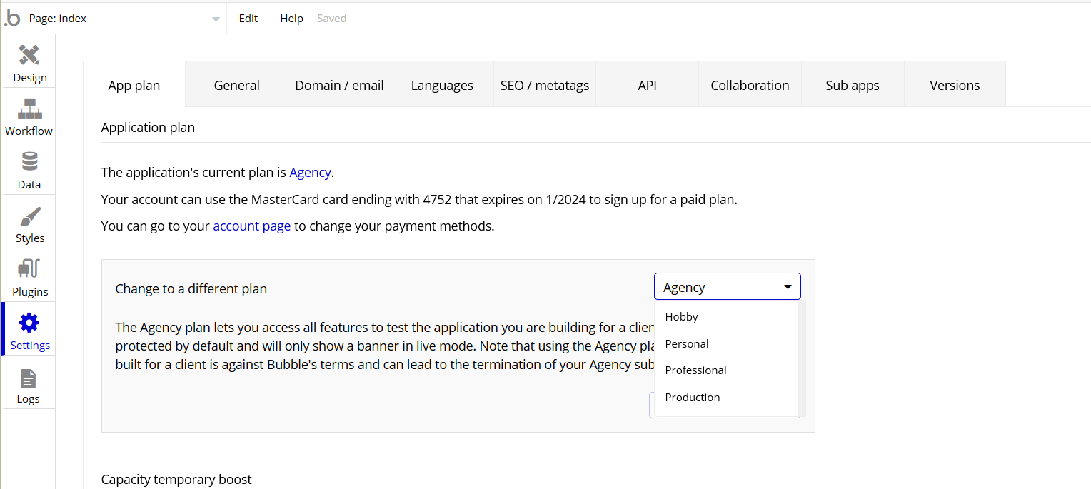 How to switch a bubble.io app to a paid plan